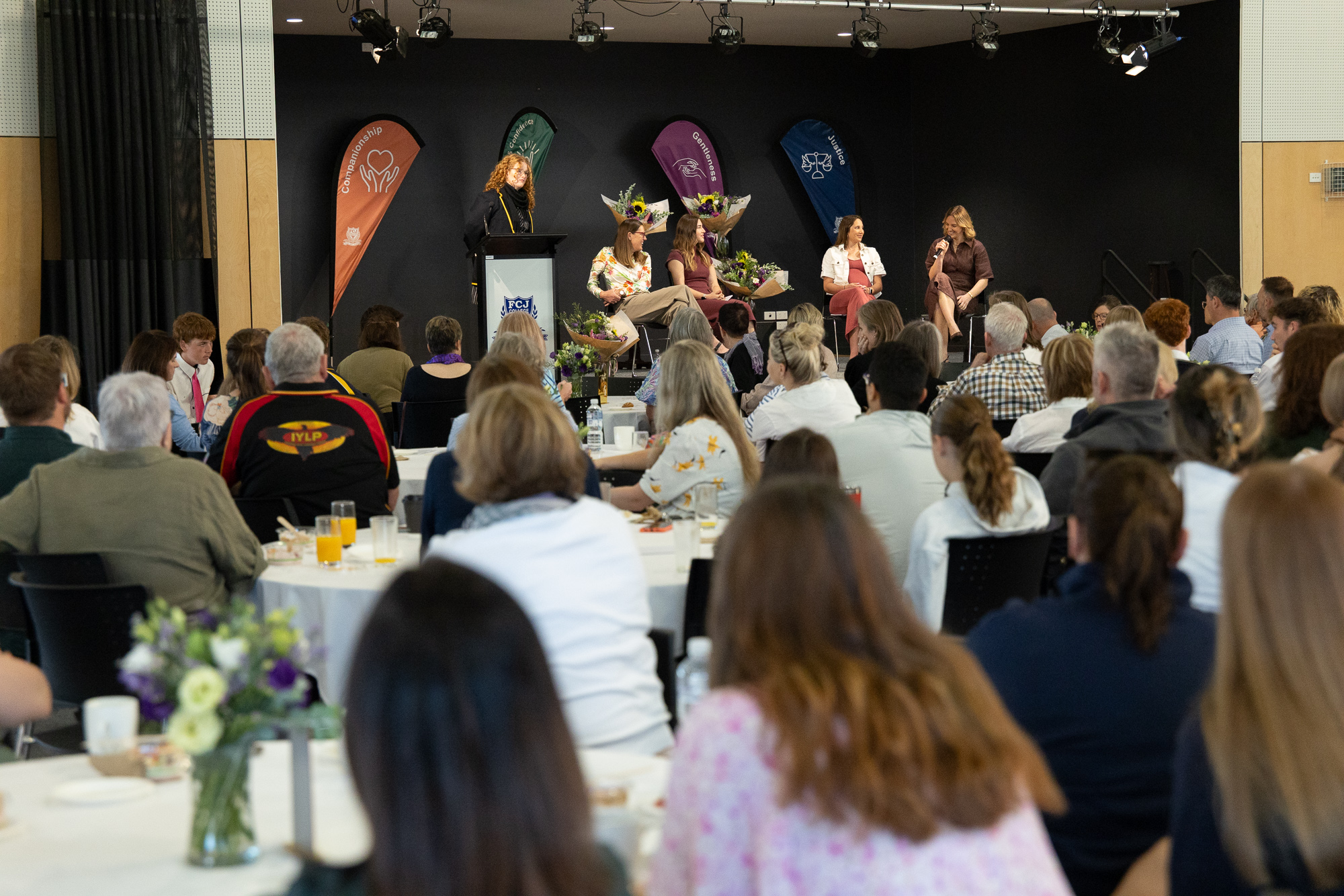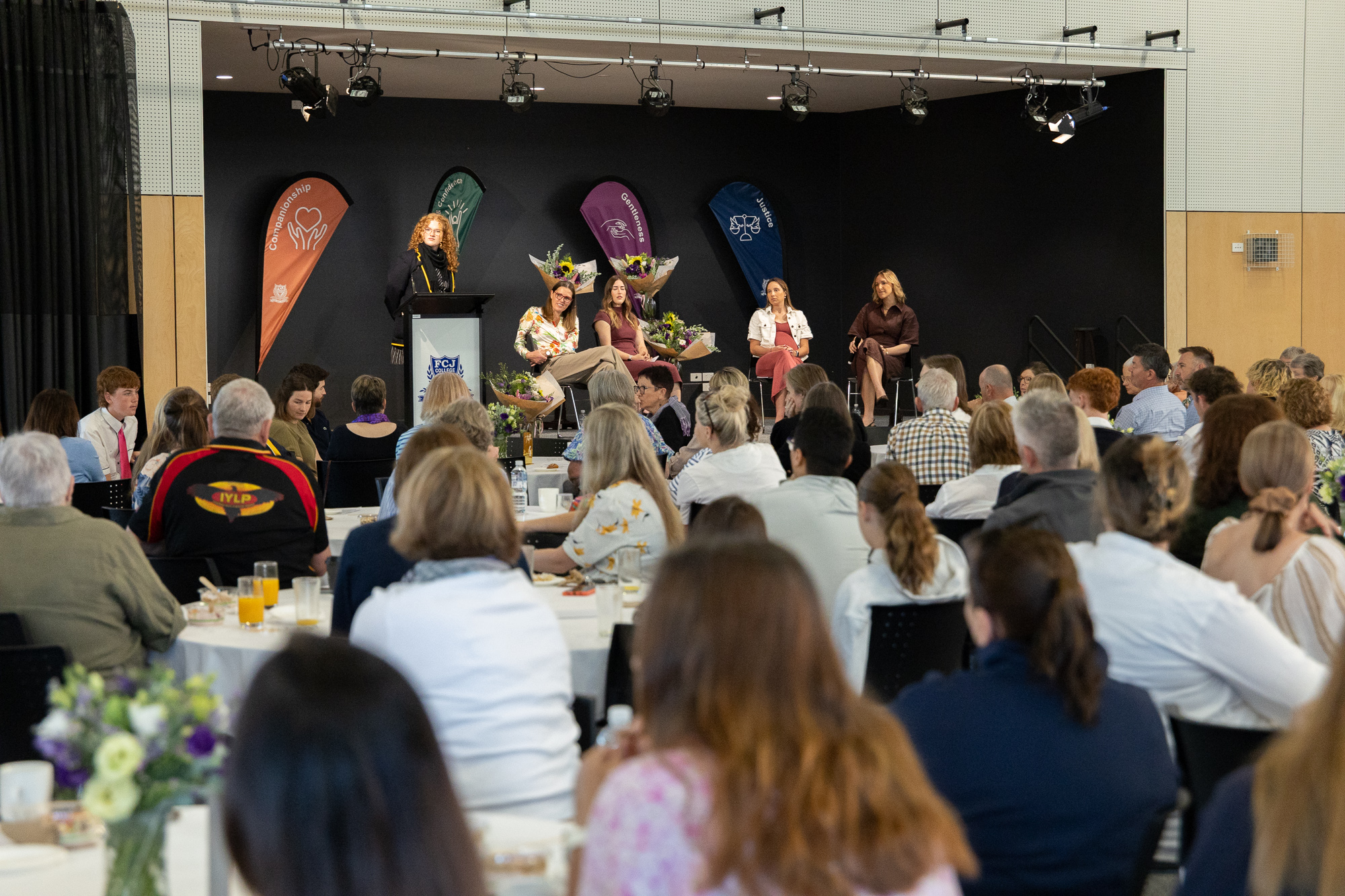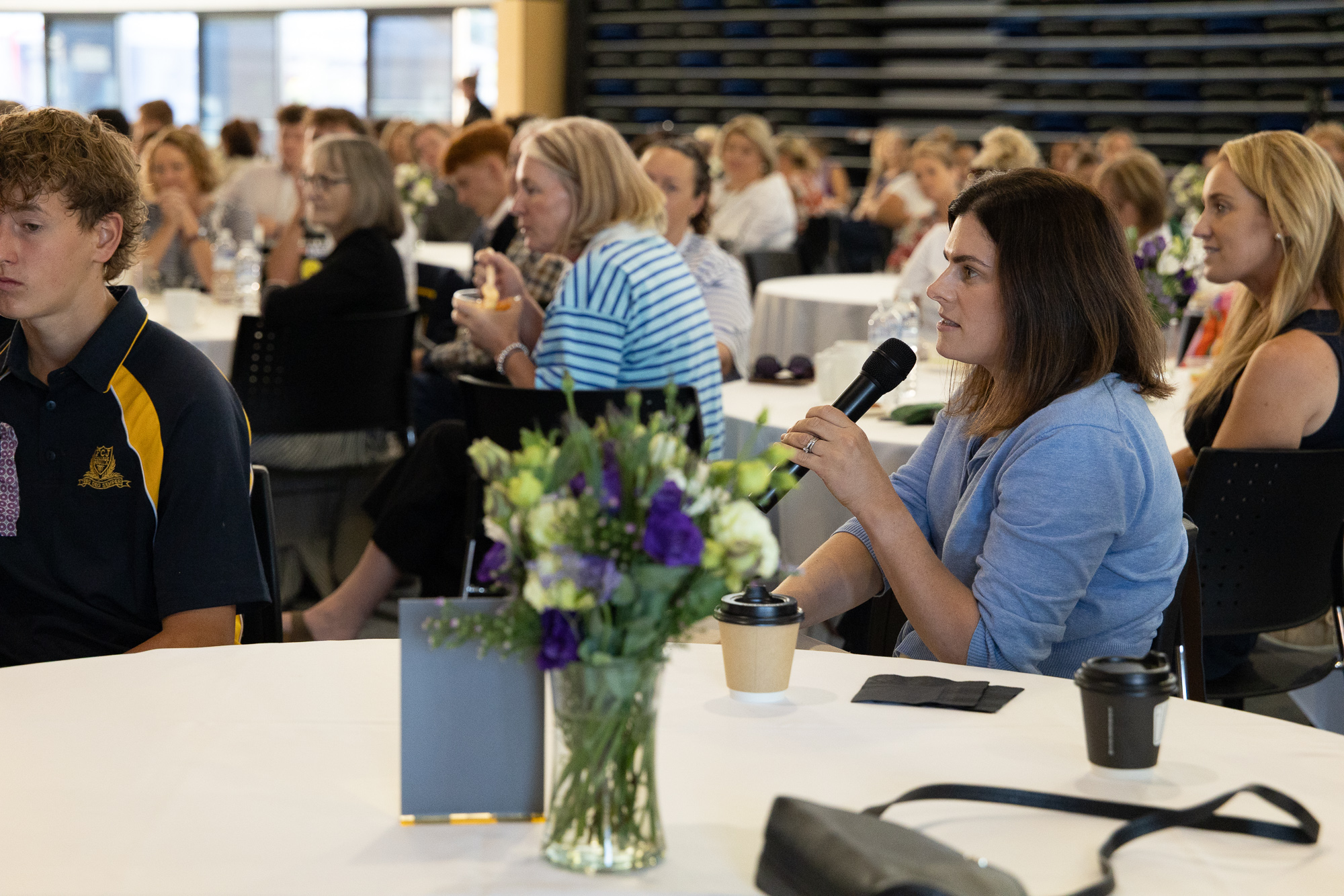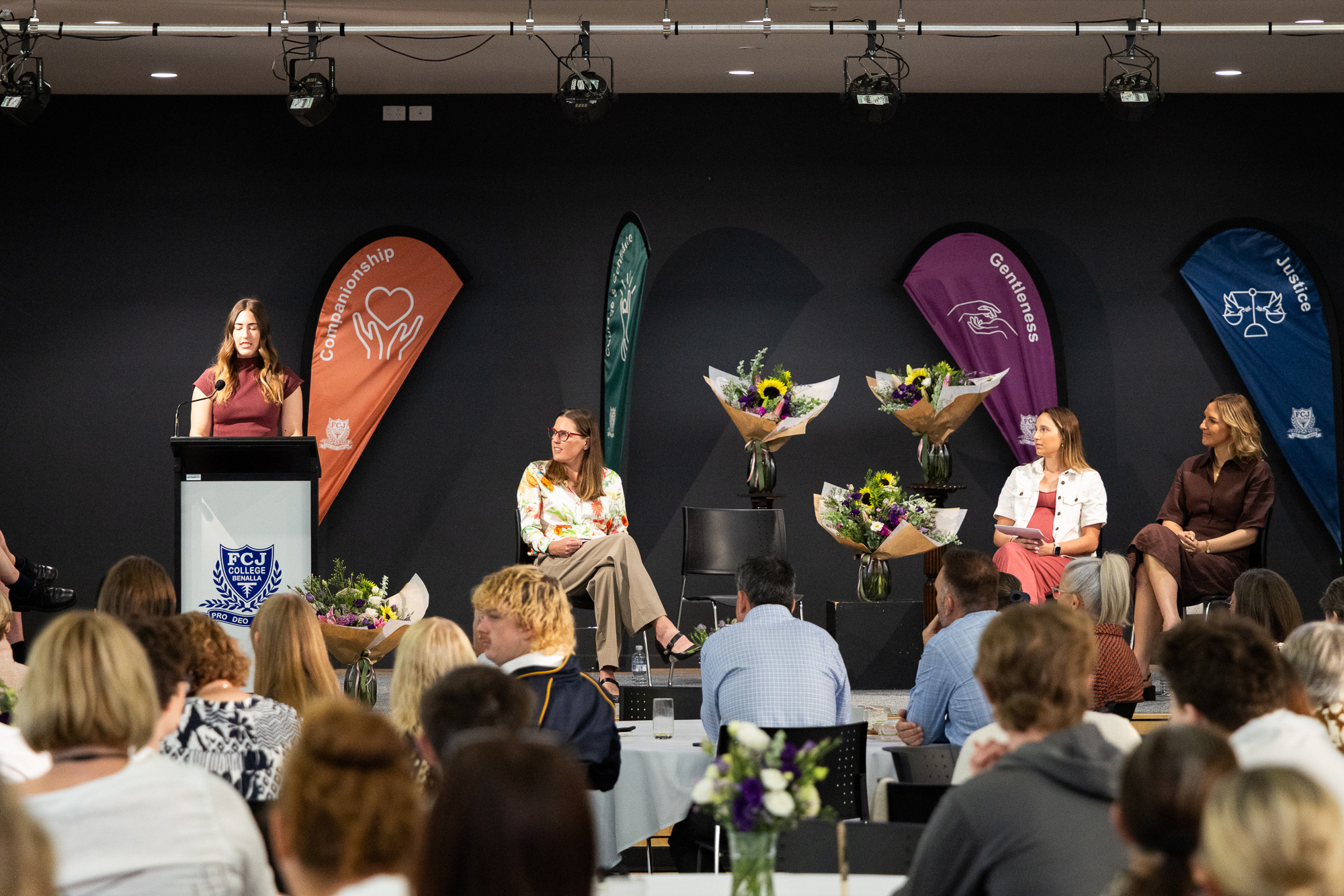 Students, staff, and members of the broader community gathered in our Marie Madeleine Centre to share breakfast and hear from an inspiring panel of FCJ College alumni reflecting on their journeys since finishing school.