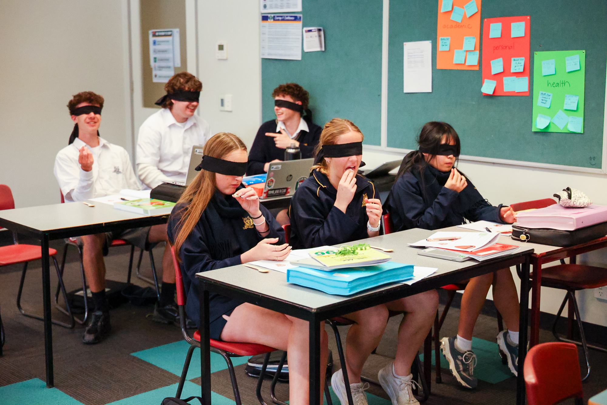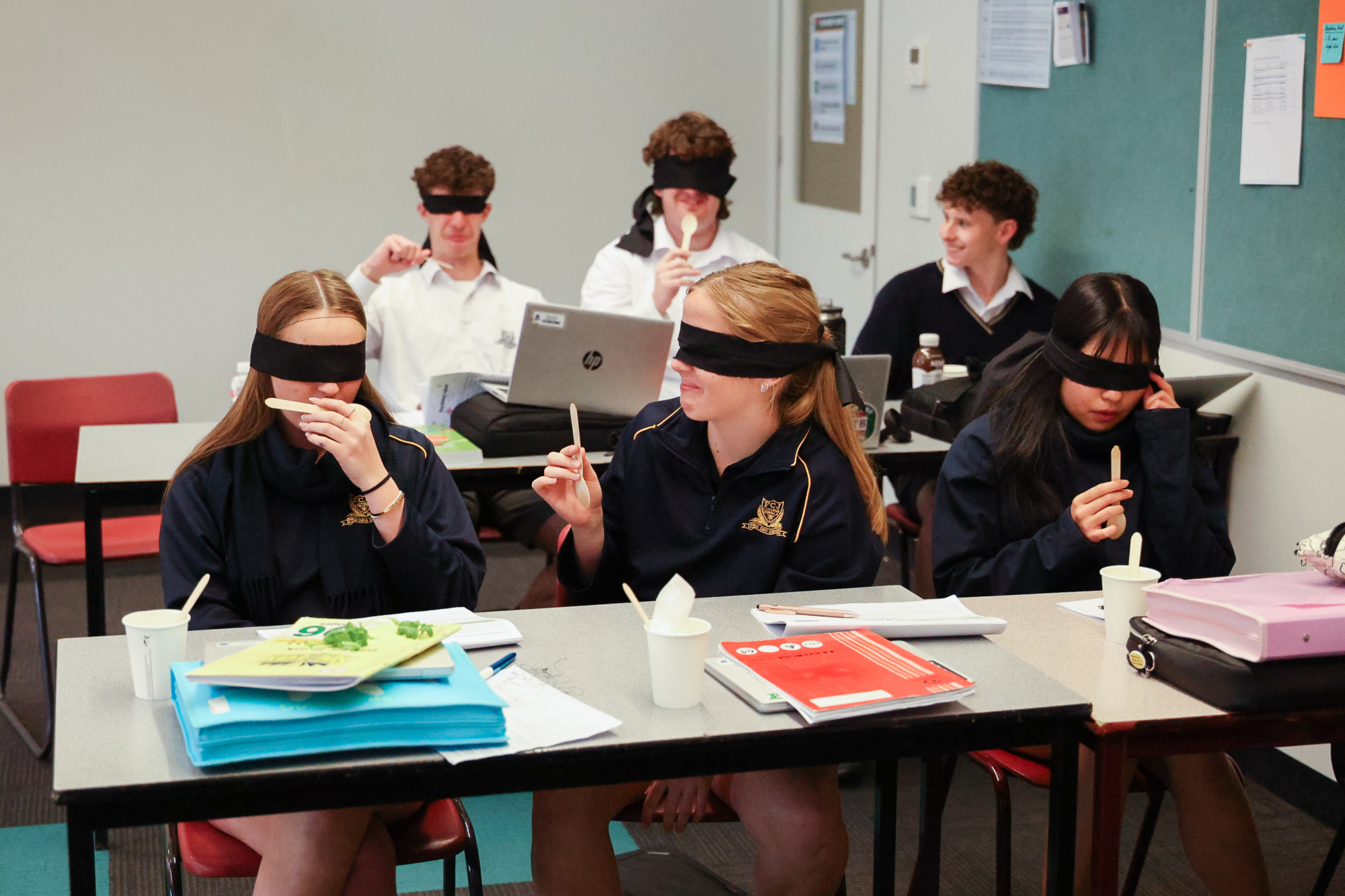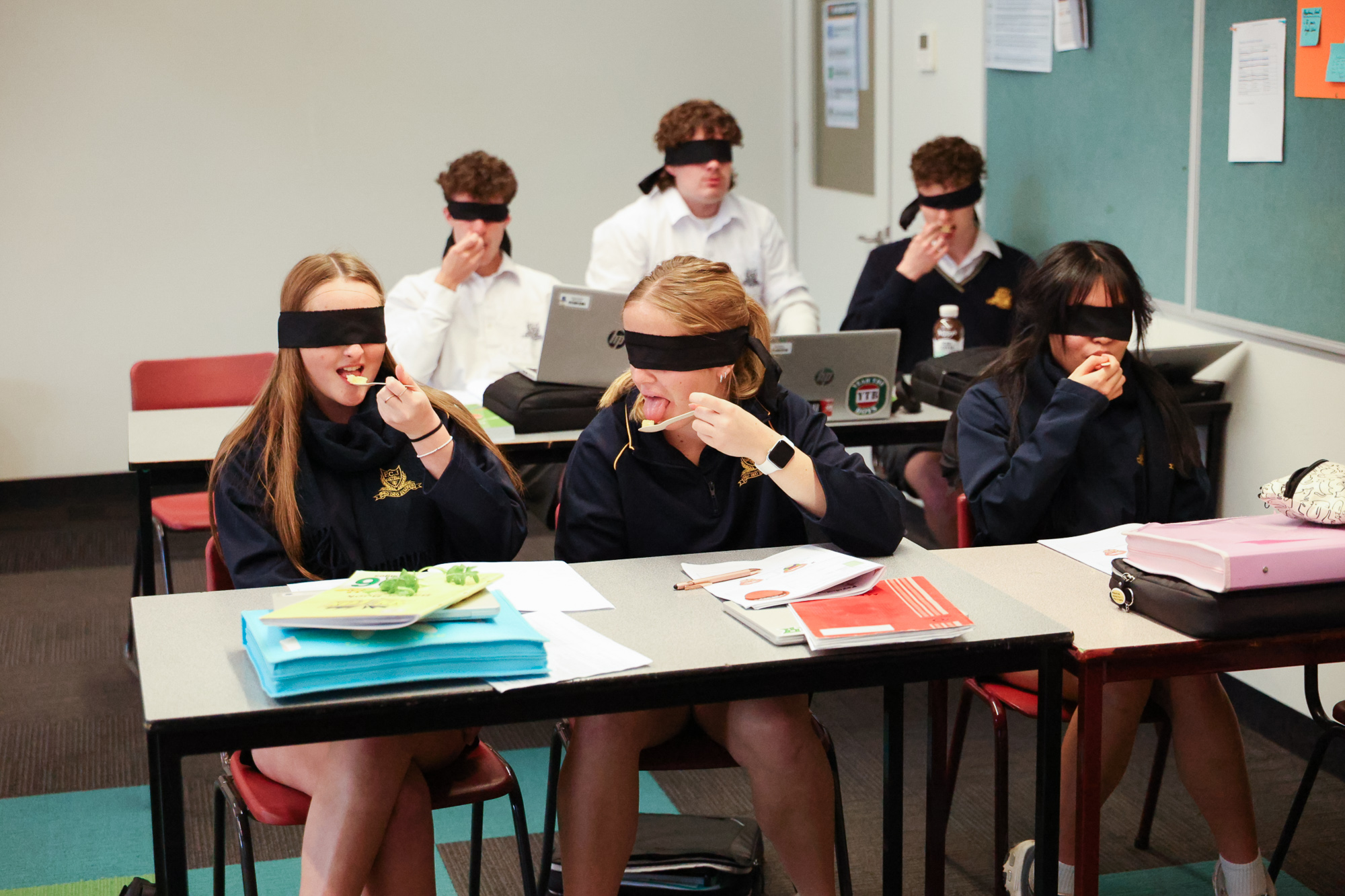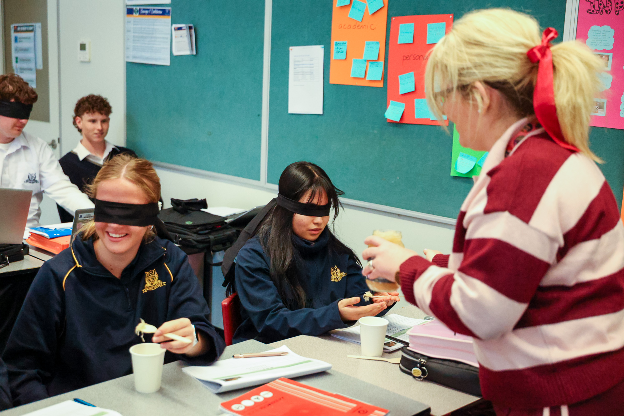 In the classrooms, learning and hands-on experiences are in full swing. Unit 4 Chemistry students conducted a distillation using orange peel and lemon-scented gum leaves to extract essential oils — a fascinating way to explore chemical separation techniques. Meanwhile, Unit 2 Psychology students explored the five taste senses —sweet, sour, salty, bitter, and umami — through a fun blindfolded taste test!Using their understanding of the gustatory system, students sampled mystery foods and guessed each flavour (and tested just how much they trust their teacher!).