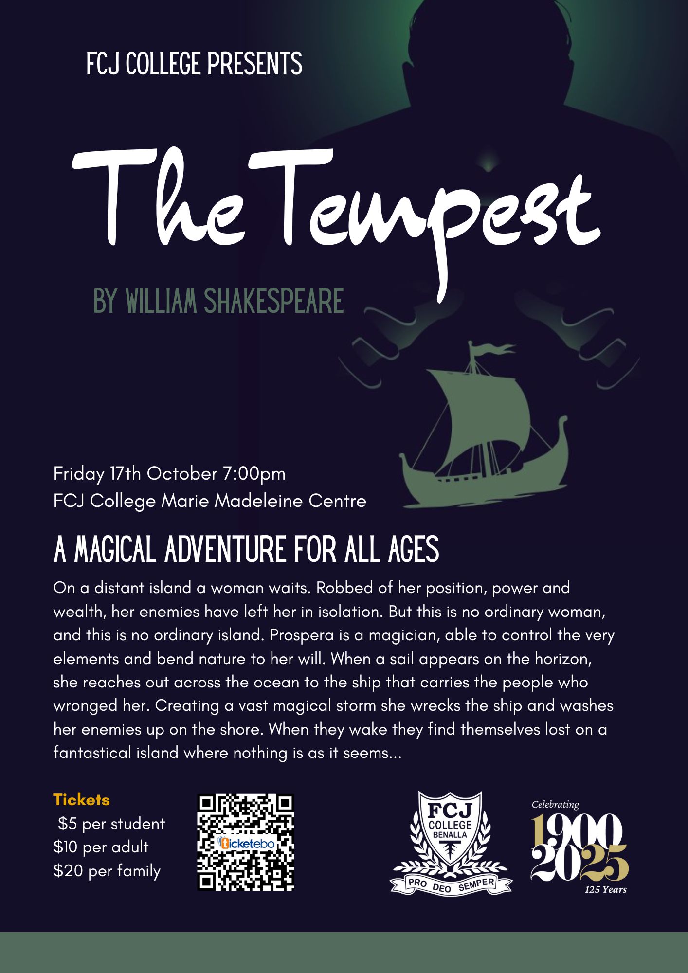 And finally, rehearsals are in full swing for our upcoming school play The Tempest by William Shakespeare— a magical adventure for all ages, taking the stage on Friday 17th October 7:00pm at our FCJ College Marie Madeleine Centre.