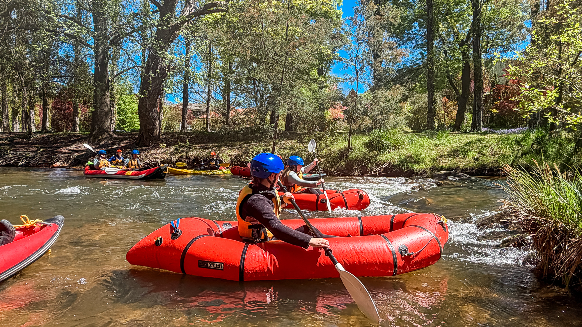 Day 2 began early on the banks of the Ovens River, where Adventure Guides Australia introduced the group to single and double pack rafting. Students quickly picked up the necessary skills and navigated the rapids with confidence. The guides praised the group as one of the best they’ve worked with, highlighting their ability to follow instructions and work together effectively.