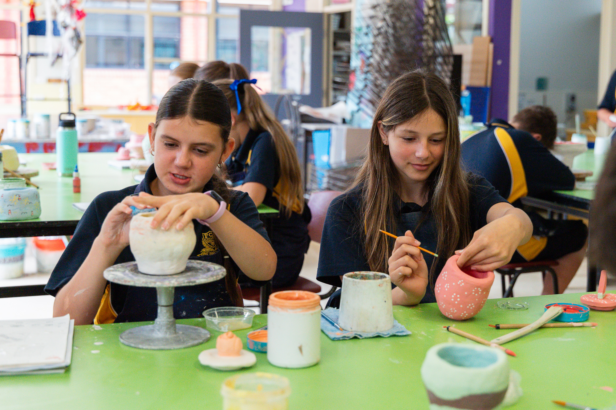 Meanwhile, our Year 7 Art students have been busy applying underglaze to their Hermannsburg Potters–inspired clay pots. Once fired, the painted designs truly came to life, with colour and personality shining through — what fantastic results.