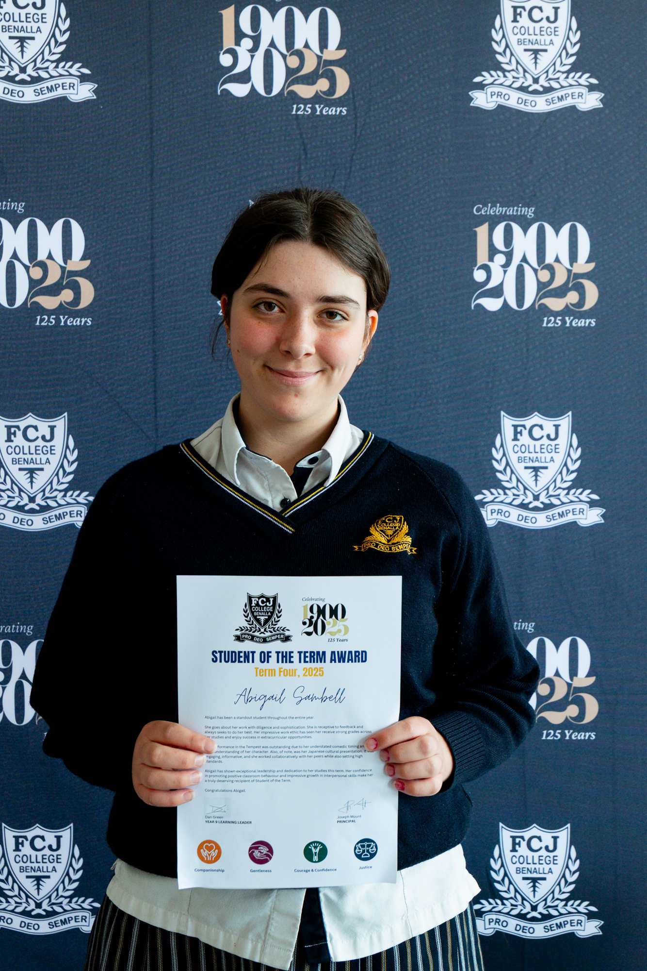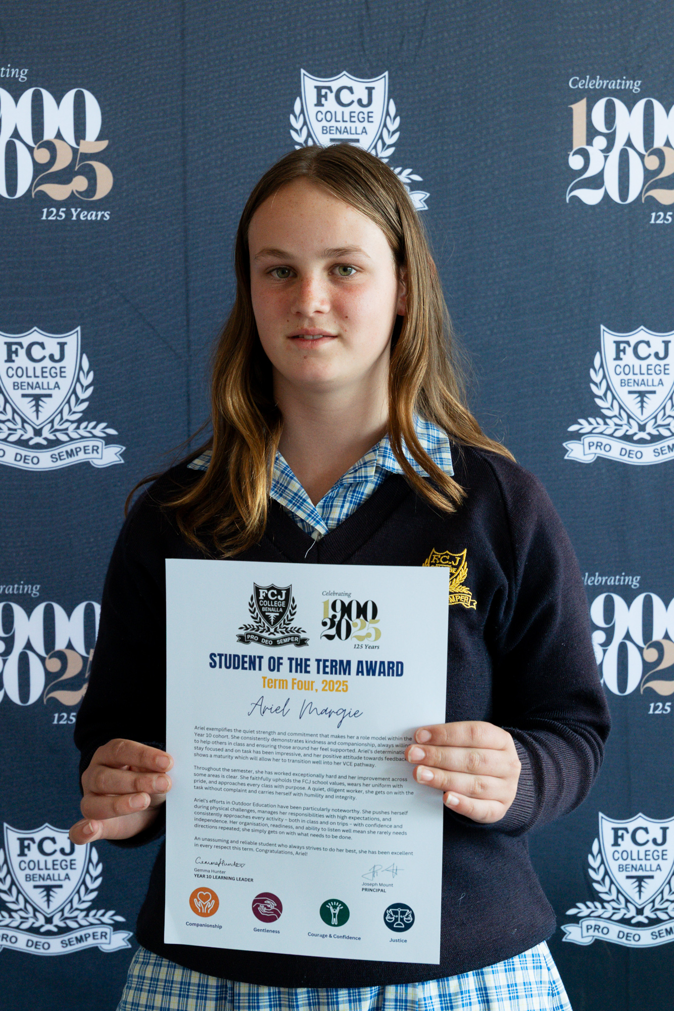 Our FCJ College community also gathered for the final assembly of the year to celebrate achievement and welcome new leadership. Congratulations to our Term 4 Students of the Term — Owen Tilton, Ariel Margrie, Abigail Sambell, Dakota McNeill and Lavinia Kinderis— and to all students who received ICAS certificates.