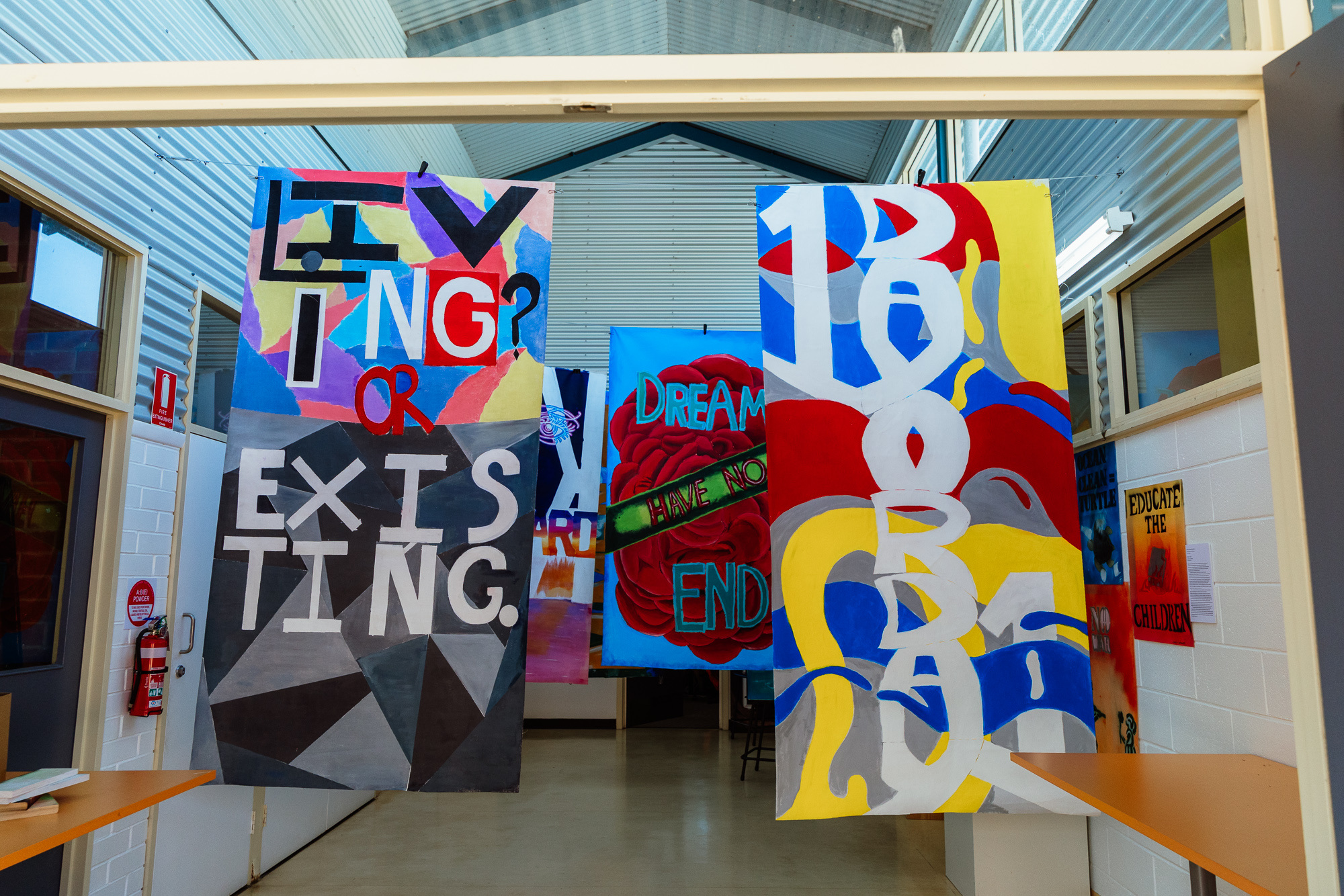 Adding colour and creativity to the week, our Year 10 Painting and Drawing students unveiled a new display in the FCJNOW Gallery — a series of uplifting text-based banners that will soon move to brighten the Year 10 locker area. The pieces are thoughtful, bold, and beautifully executed. Students also took time to reflect on their initial visions and the techniques they used to bring them to life. Each banner was thoughtfully critiqued as part of the creative process, giving students valuable insight into their artistic development and design choices.